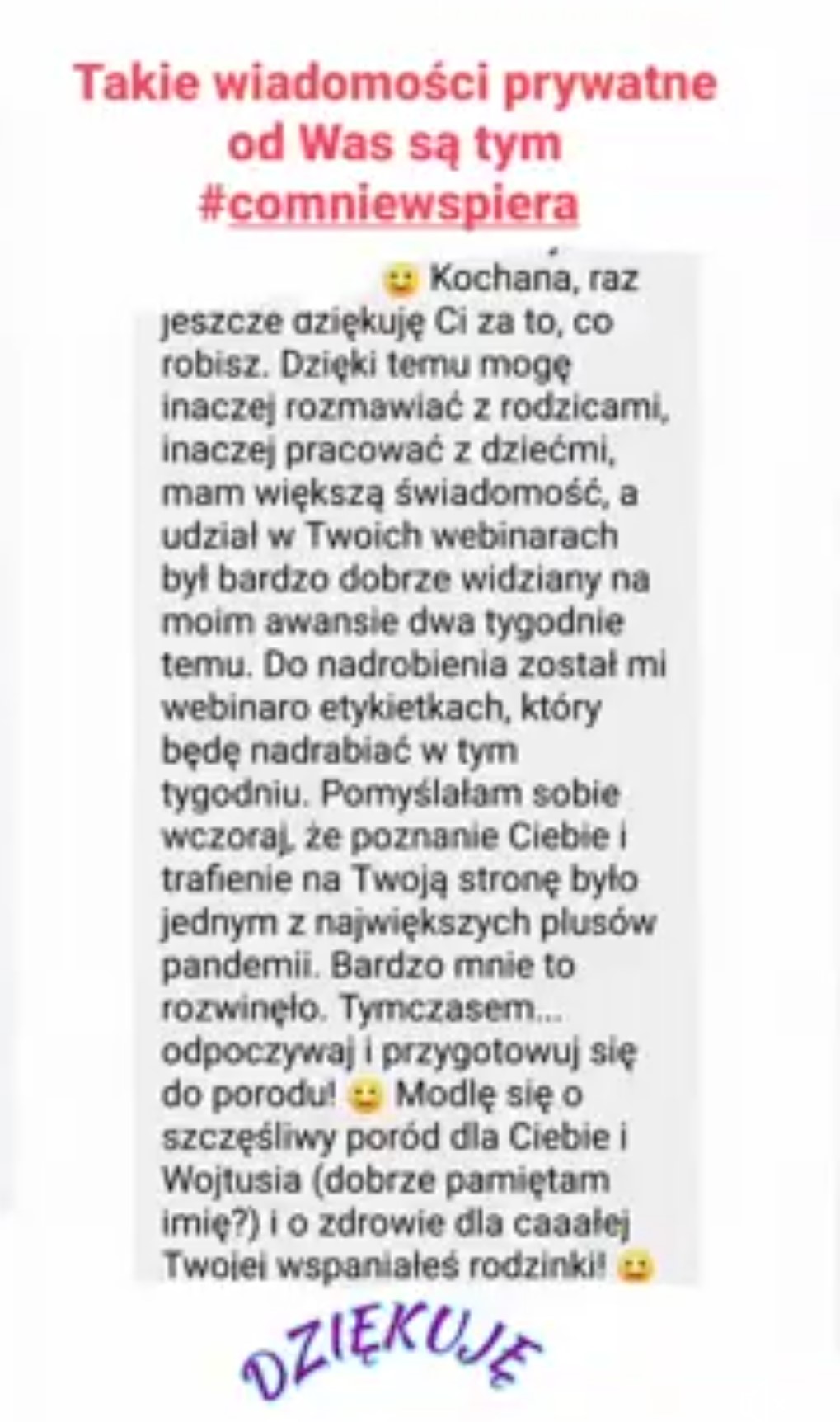 Nasze odczucia po kursie to świętowanie, że mamy dobre randeczki. Takie mam wrażenie, że mój mąż nawet cieszył się z tego czasu bardziej. Oboje czuliśmy się słuchani, ważni dla siebie i było to bardzo wzmacniające naszą bliskość. A fakt, że to było w wieczory dodawał temu uroku. I z ciekawością słuchałam wniosków męża. Także Justynko, dobra robota ♥️