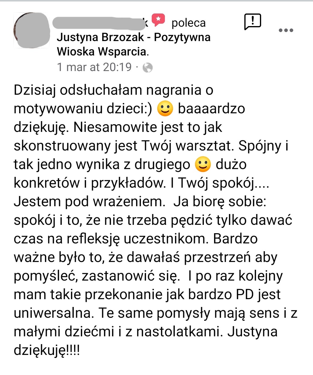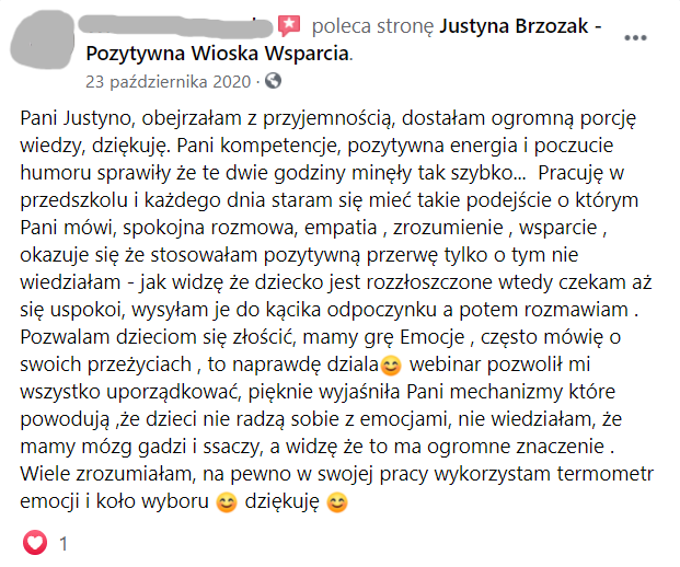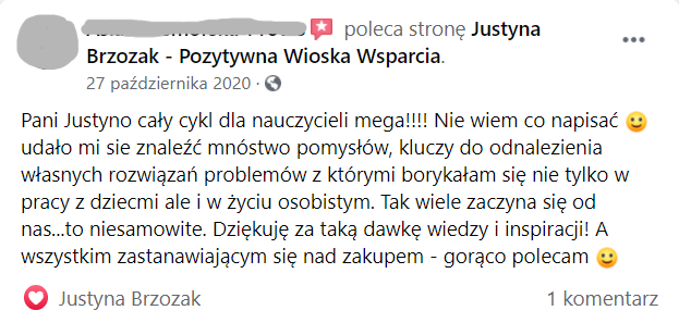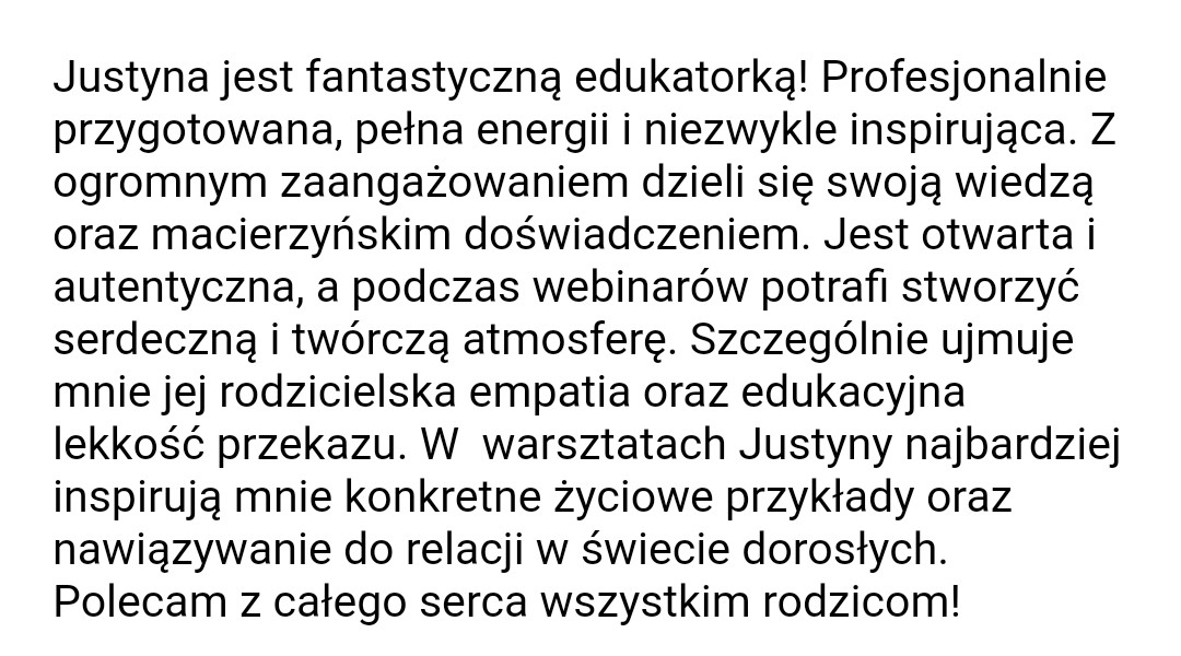 Bardzo polecam, bo taka empatia, wiedza i praktyka w jednym to rzadko spotykane połączenie!” Justyna